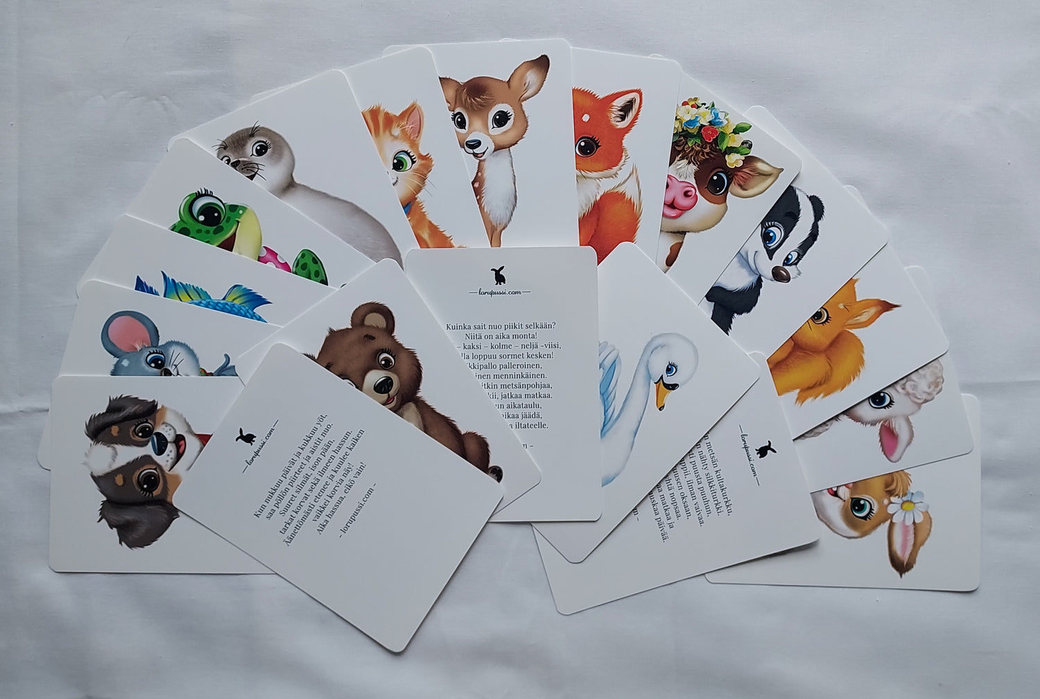 Laadukkaat eläinaiheiset Lorukortit hellyyttävillä runoilla